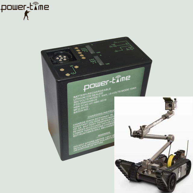 These military robots for explosive ordnance disposal are Driven by BB-2590 rechargeable Li-ion batteries, which are manufactured by several military battery factories in the world, including Bren-Tronics, Ultra-Life in the US, and Power-Time Technology in China